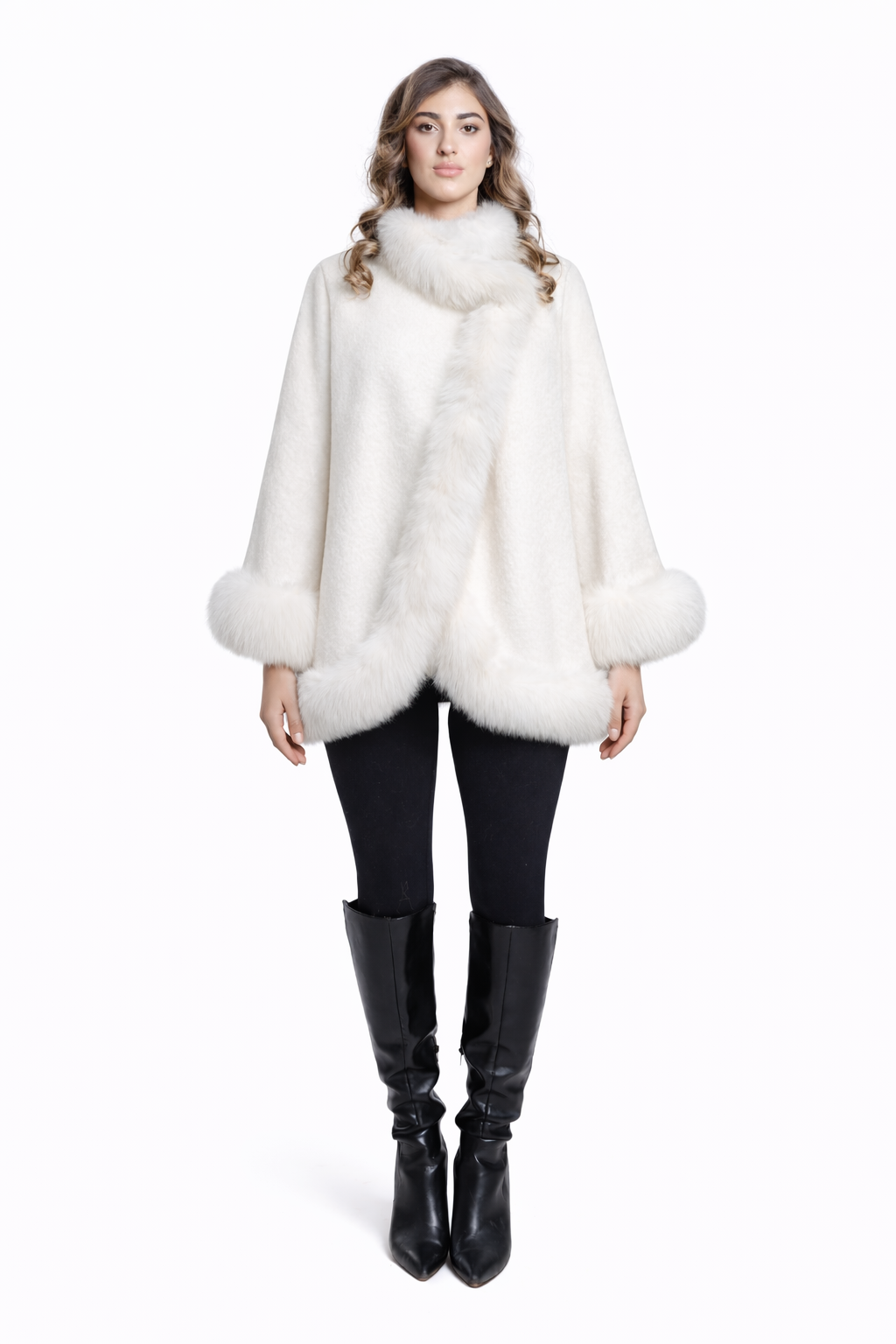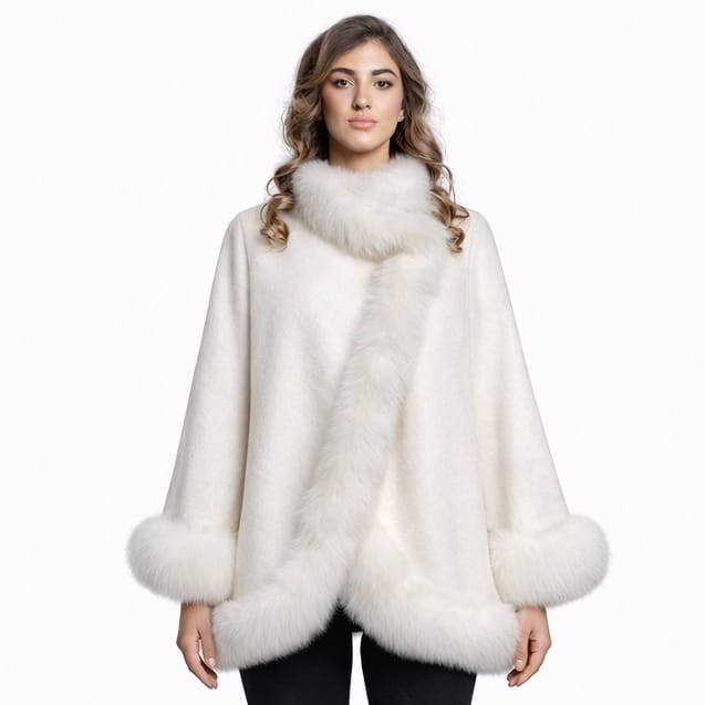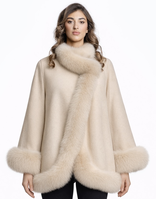 Affirmez votre style avec le Manteau Aurélia, une pièce d’exception alliant laine naturelle, cachemire et véritable fourrure de renard.